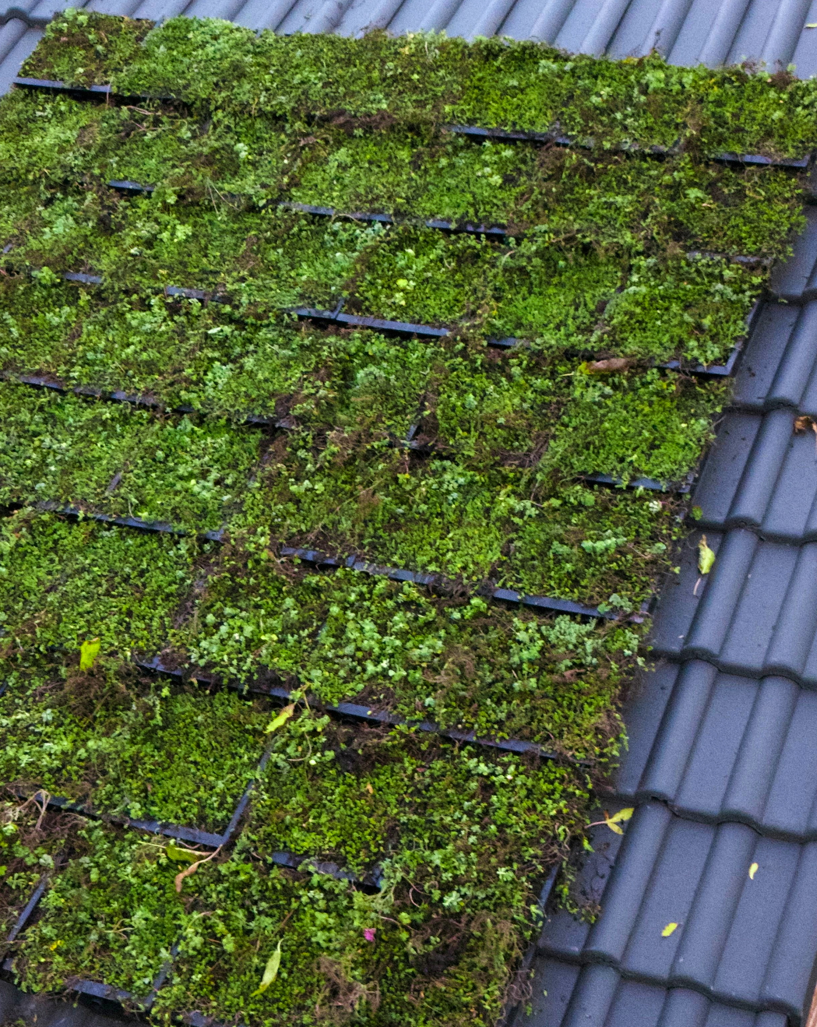 Die mit acht Zentimetern Spezialsubstrat gefüllten und mit Sedum vorbepflanzten Elemente übernehmen wichtige bauliche Funktionen: