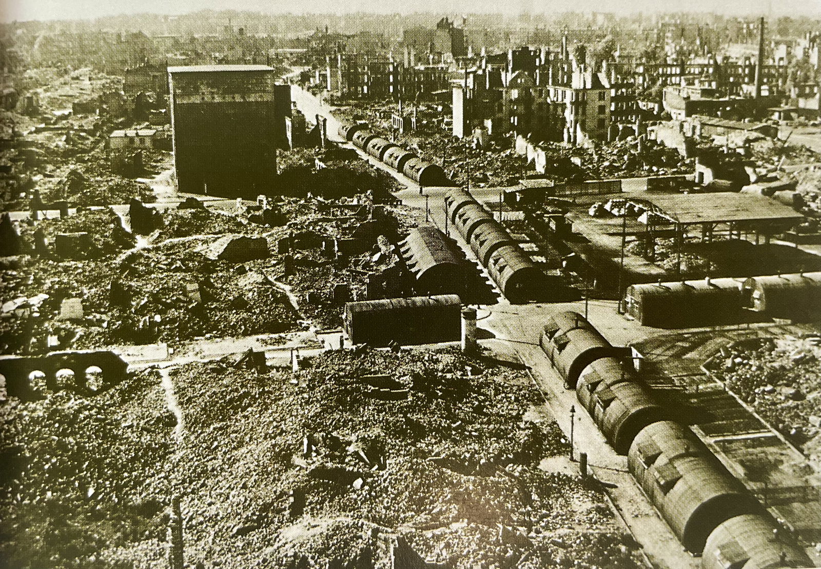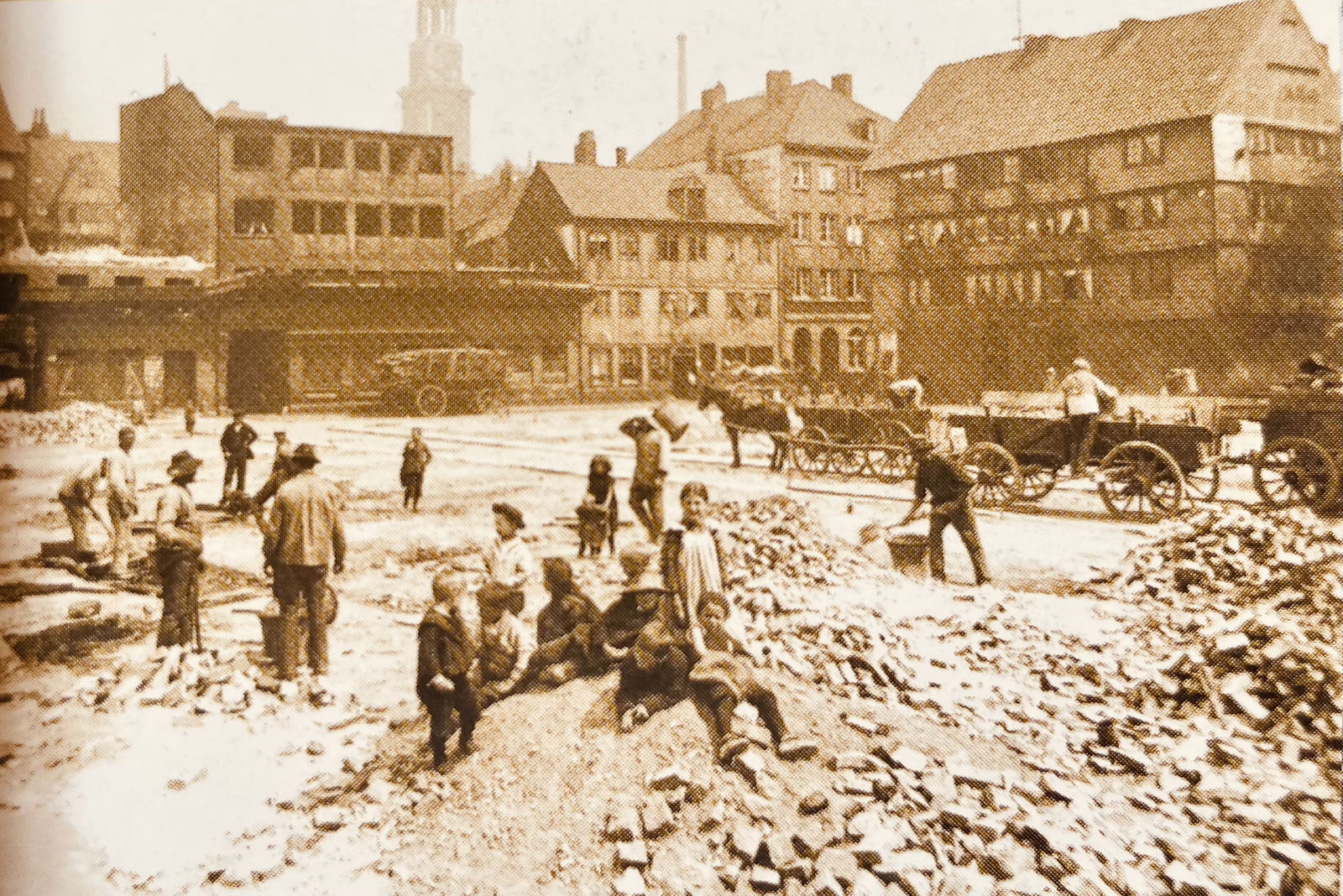 Mit dem weiteren Kriegsverlauf erledigten sich auch die hochfliegenden Pläne der Nationalsozialisten für neue Stadtkonzepte und den Wohnungsbau nach Kriegsende. Zurück blieb ein Land in Trümmern: Nach Schätzungen war jede fünfte Wohnung unbewohnbar. Schleswig-Holstein kam mit knapp 10 Prozent zerstörtem Wohnungsbestand vergleichsweise glimpflich davon, was seiner peripheren Lage zu verdanken war. In Hamburg hingegen war nicht einmal die Hälfte aller Wohnungen nutzbar, und Kiel, eine der am stärksten zerstörten Städte Deutschlands, verlor über drei Viertel seines Wohnungsbestandes.