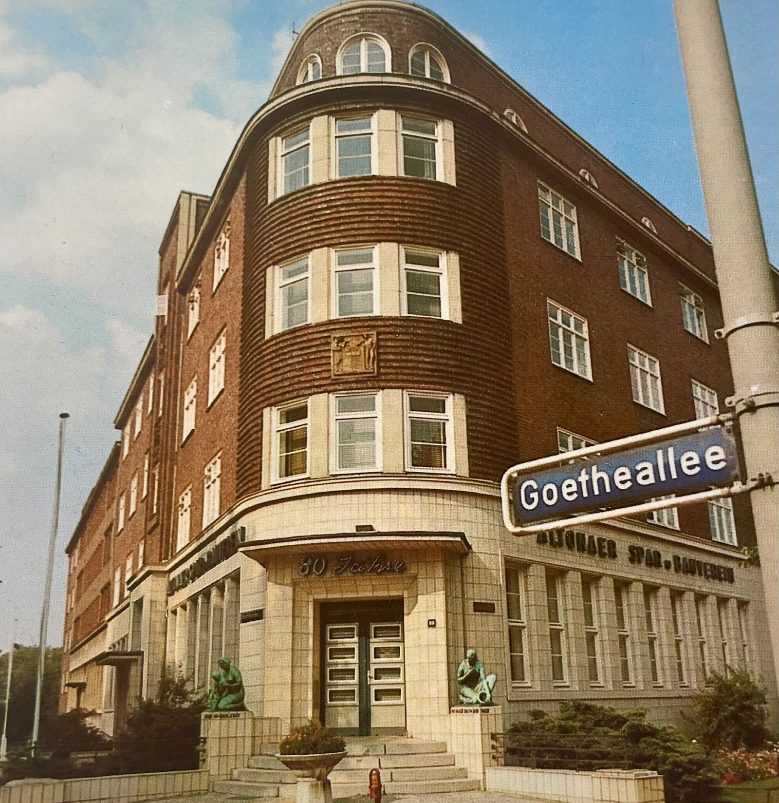 Verbandsdirektor Sievers hatte allen Grund zu guter Laune, als vom 21. bis 24. Juni 1928 in Flensburg die Jahrestagung der norddeutschen Baugenossenschaften sowie die Hauptverbandstagung unter Prof. Dr. Albrecht stattfanden – gleichzeitig feierte der Flensburger Arbeiterbauverein sein 50-jähriges Jubiläum. Der Magistrat der Stadt übernahm einen Großteil der Tagungskosten, und im Städtischen Museum ergänzten drei Ausstellungen das Programm: eine zur regionalen Bauweise, eine zu Musterwohnungen mit Kleinhausmöbeln sowie eine Schau des Feuerschutzmuseums der Landesbrandkasse.