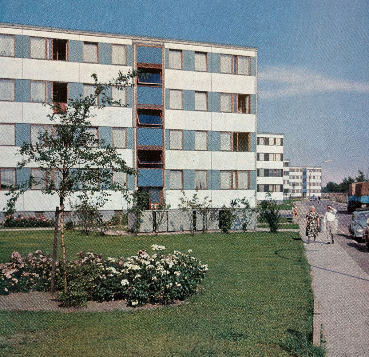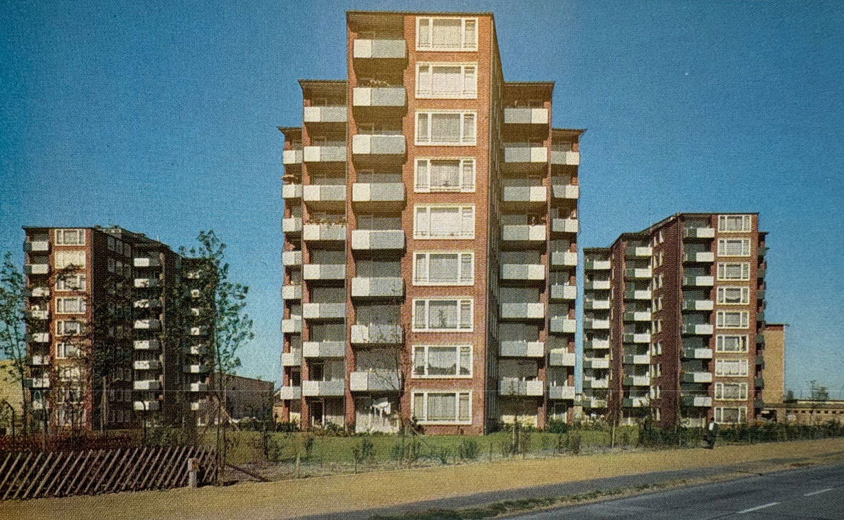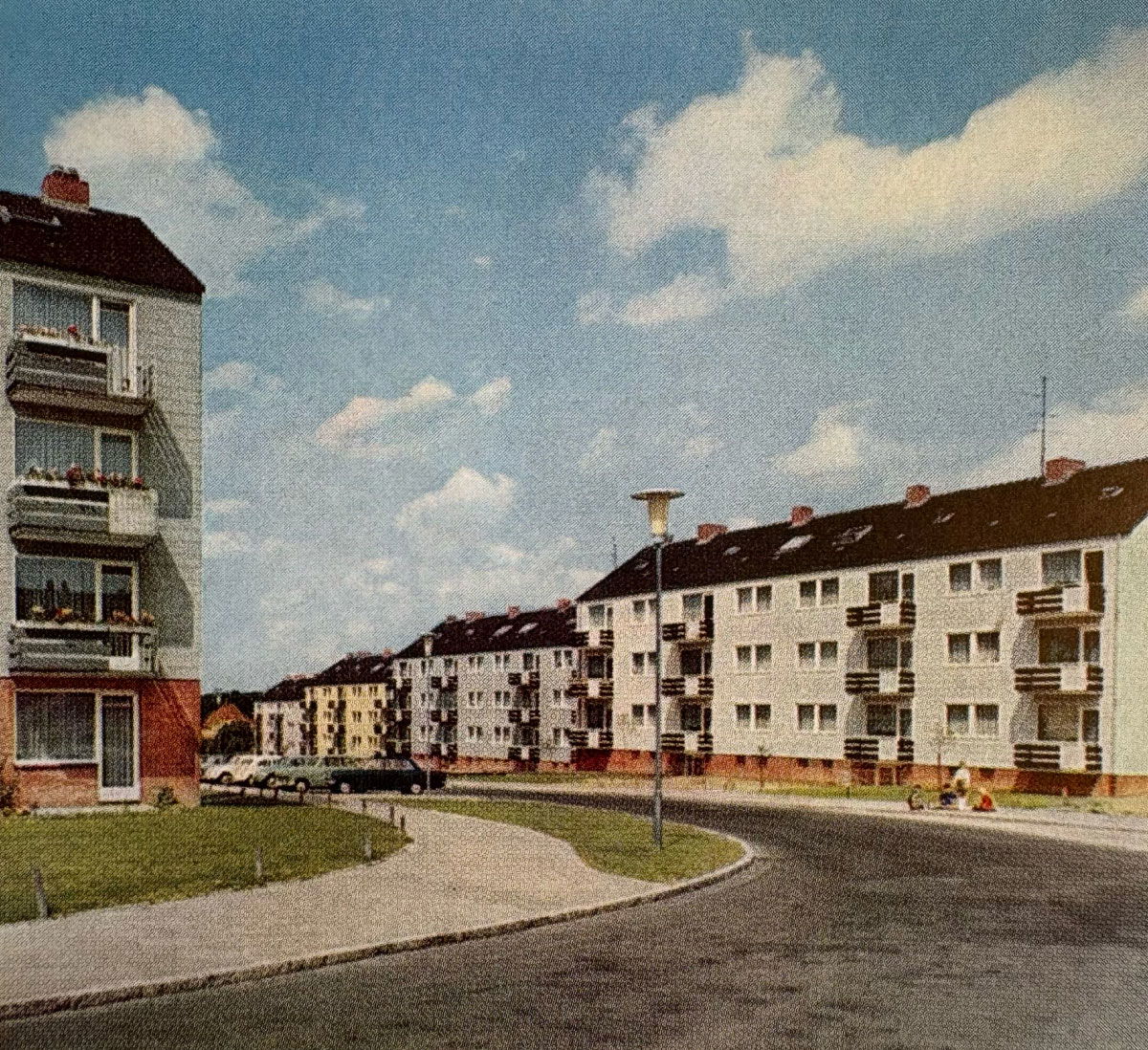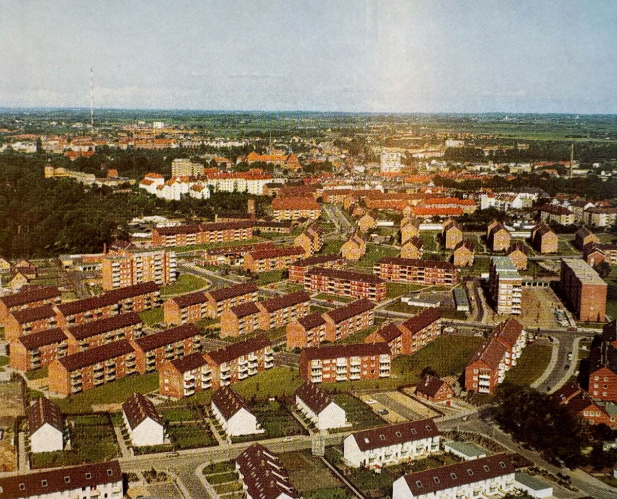 Mit der allmählichen Entspannung der Wohnungslage und dem Rückgang der zur Linderung akuter Not aufgelegten Bauprogramme erweiterte der Verband seinen Blick auf die Entwicklung ganzer Quartiere. Nun ging es nicht mehr allein um den Wohnungsbau, sondern zunehmend auch um soziale Infrastruktur. Alten- und Kinderbetreuung wurden Teil der Planung, häufig in Zusammenarbeit mit kirchlichen Trägern. Ein frühes Beispiel war das 1952 eröffnete kombinierte Alten- und Kinderheim in Neumünster, das Vorbildcharakter erhielt. Zugleich experimentierten viele Wohnungsunternehmen mit neuen Bauformen wie Reihenhäusern für junge Familien oder Mehrgenerationenhäusern. Gemeinschaftsräume, Bibliotheken, Sportanlagen, Kinderspielplätze und Grünflächen ergänzten das Wohnen im Norden – frühe Ansätze einer Quartiersentwicklung, die über die reine Wohnraumbeschaffung hinausging.